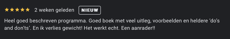 Heel goed beschreven programma (eboeken afvallen). Goed Boek met veel uitleg, voorbeelden en heldere ‘do’s an dont’nts. en ik verlies gewicht. Het werkt echt. Een aanrader